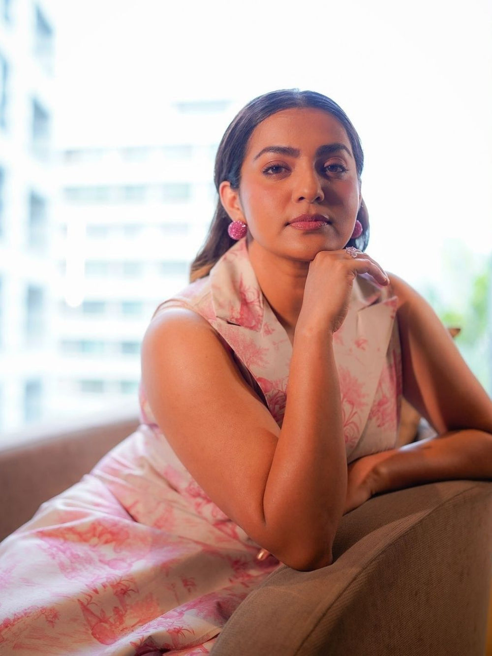 The Adele crop top features a tube-smoked design, which creates a gathered, ruched effect around the bodice. This style is both flattering and comfortable to wear, as it provides a snug fit that hugs the bust area. Pair up with Adele Jacket and pant to complete the Look